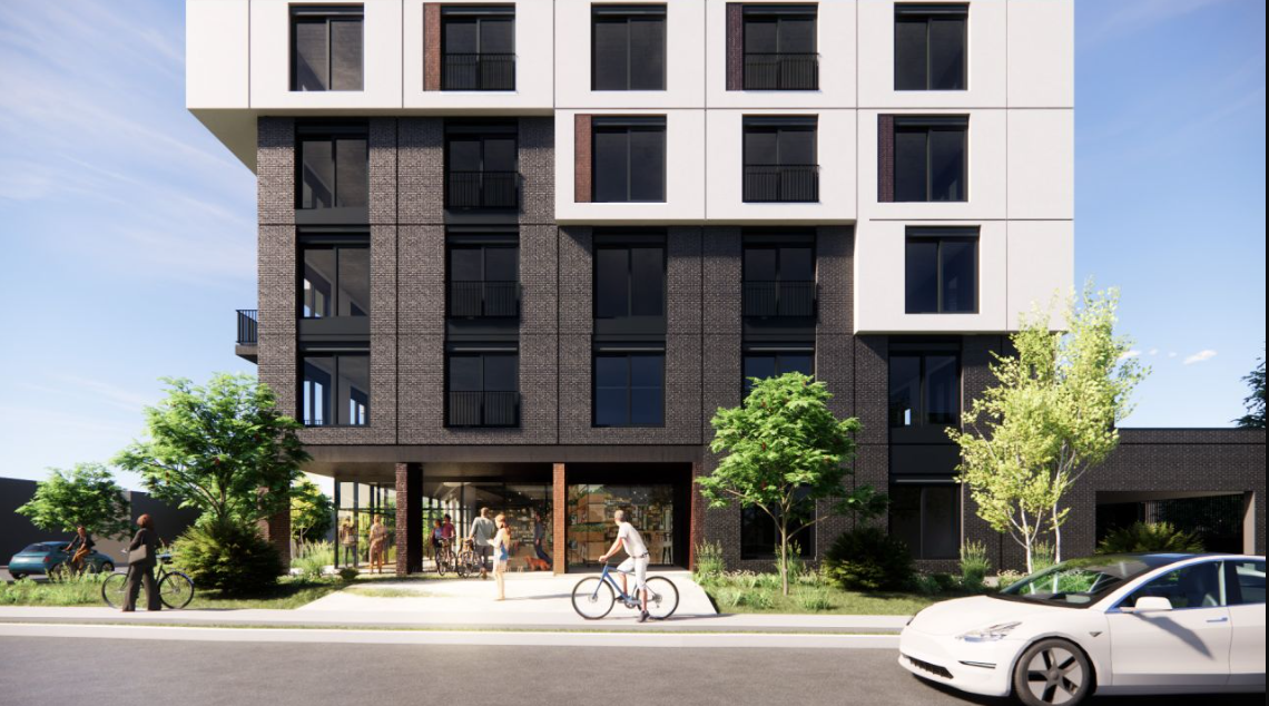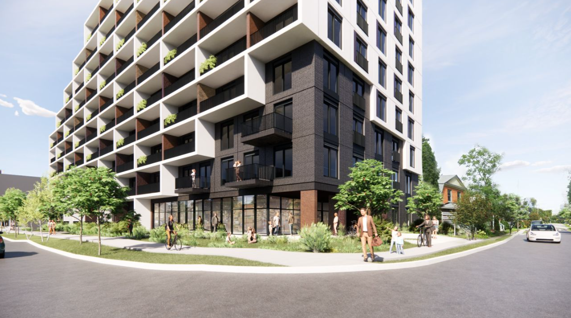 The project plans to include a total of 158 residential units, featuring studios, one-bedroom, one-bedroom with den, and two-bedroom options.