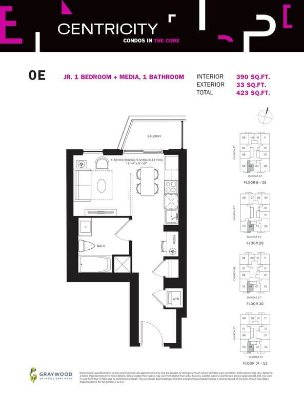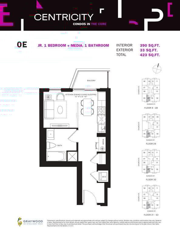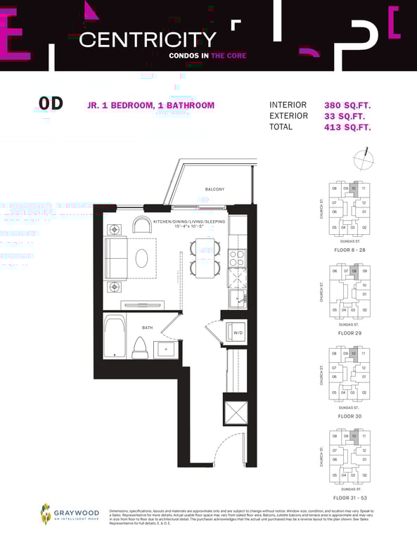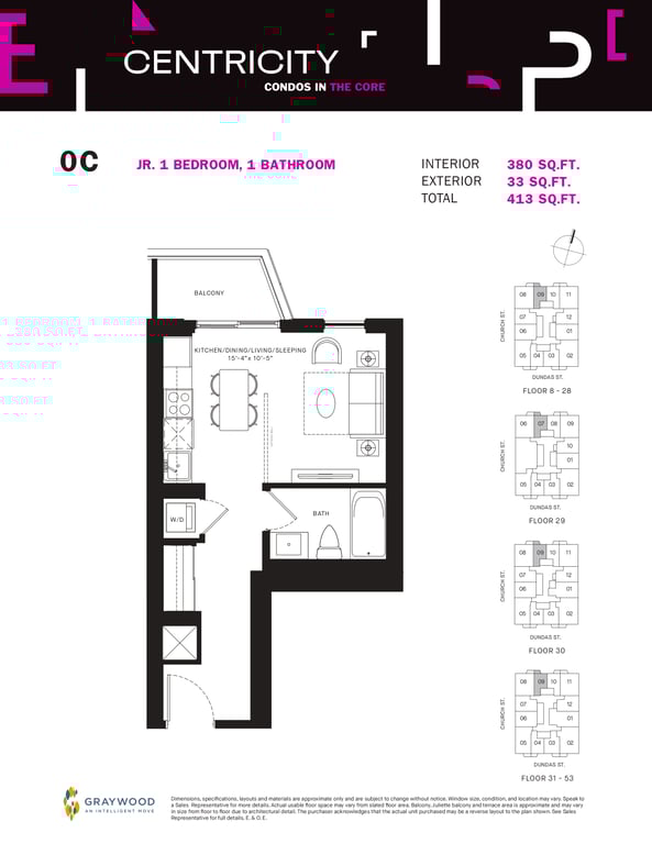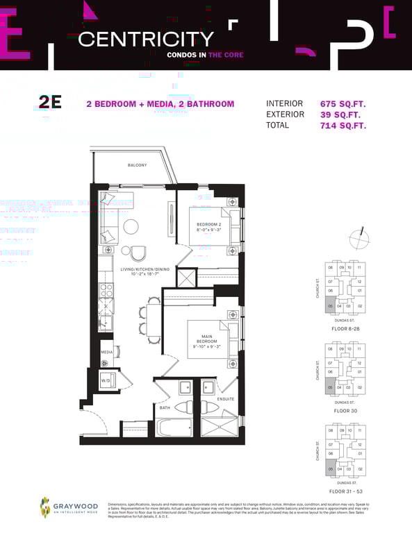 Centricity Condos from Graywood Developments is a modern collection of condominiums coming near the northeast corner of 241 Church and Dundas street East in the downtown core. According to the proposed plans, buyers will find 594 Centricity Condos in a high-rise building of 53 storeys.