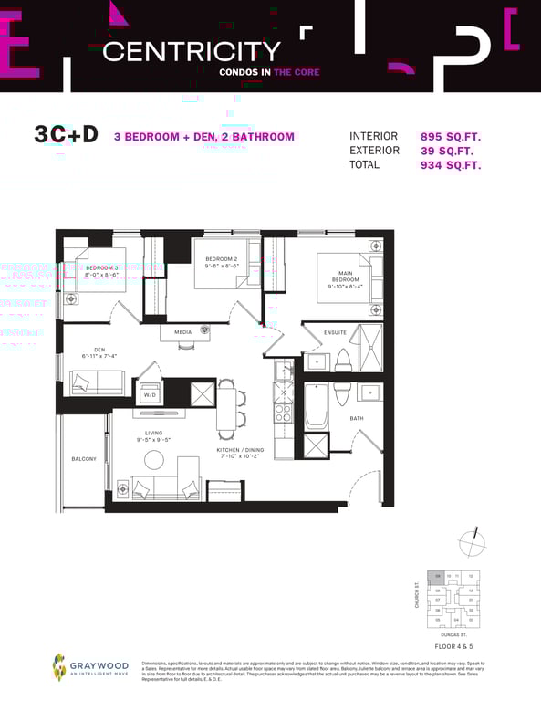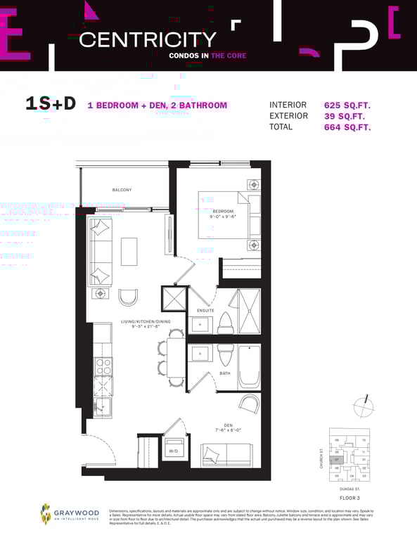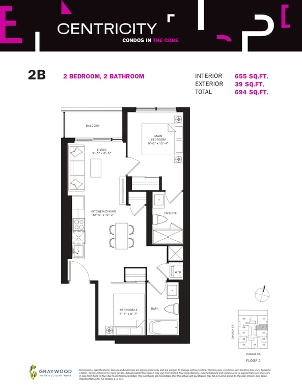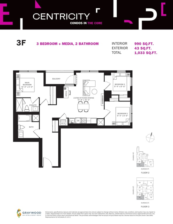 Graywood Developments & Turner Fleischer Architects are proposing modern floor plans for Centricity Condos, including studio, one-bedroom, two-bedroom and three-bedroom units with contemporary interiors. Each unit will also have a premium selection of features & finishes. Besides this, Centricity Condos from Graywood Developments will also have unlimited stylish amenities such as retail spaces, rooftop terraces, parking spots and much more.