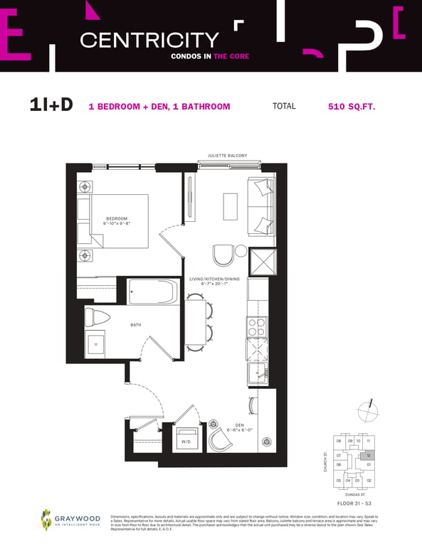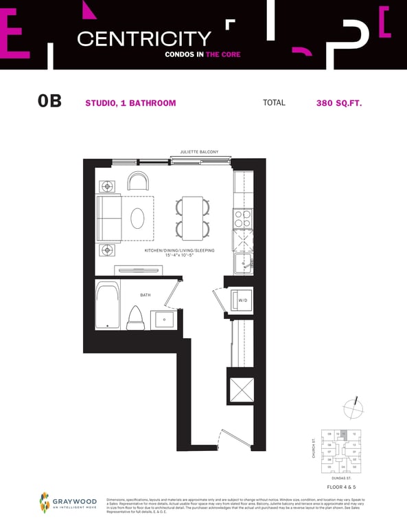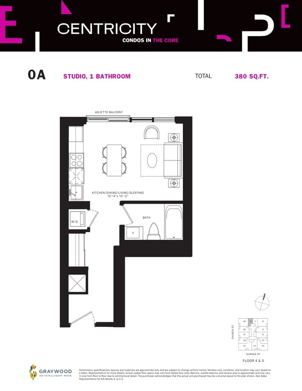 Centricity Condos from Graywood Developments sit at a transit-oriented address that has a perfect transit score of 100 in Toronto. Being near Dundas St, students & young professionals living in Centricity Condos will find Dundas subway station within a short distance away. 241 Church St is also a short drive away from Union Station and Lester B. Pearson International Airport.
