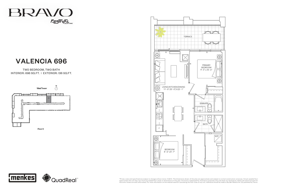 The leisure and employment hubs of the city are easily accessible from the South VMC location of the Bravo Festival condos. These condos provide connected living with quick access to numerous rapid transit systems.