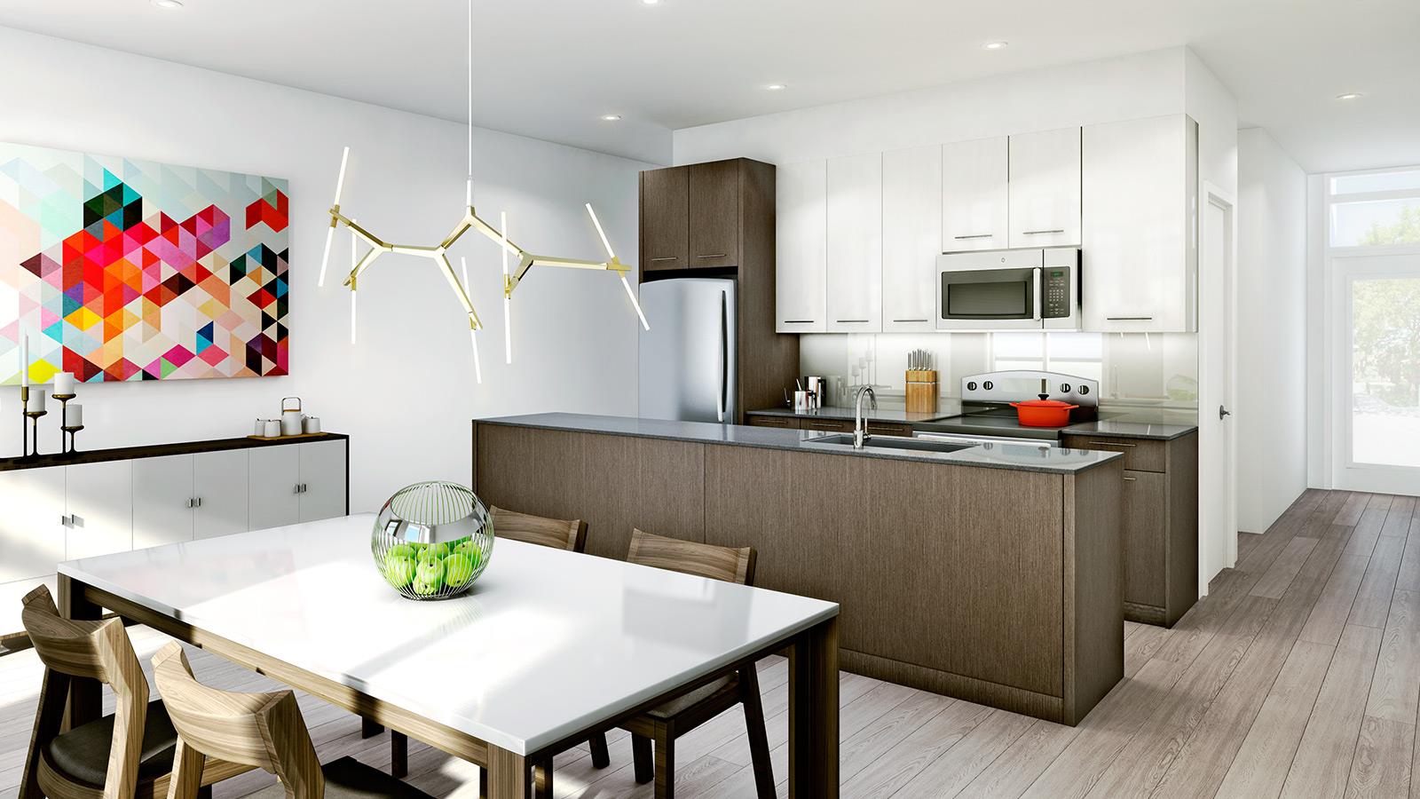 Brockton Commons brings an intimate residential space with a low-rise building of 3 storeys. This building is home to 36 condo units. The developer has proposed a generous mix of floor plans varying from two to three bedrooms with luxurious baths.