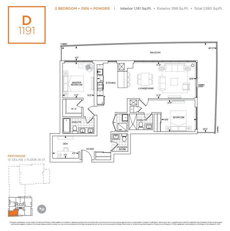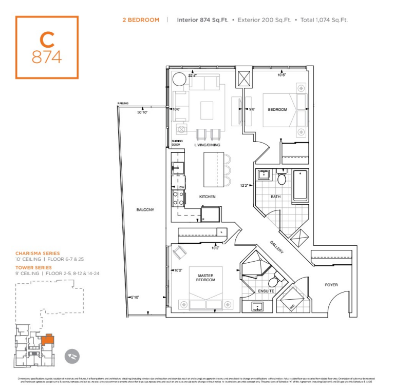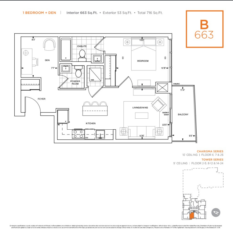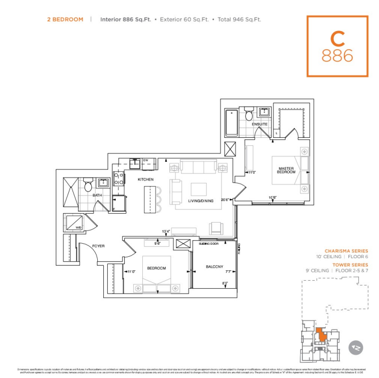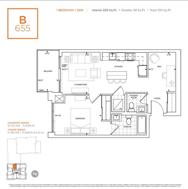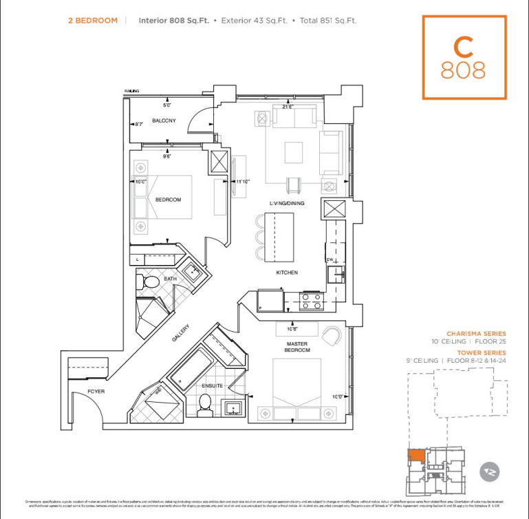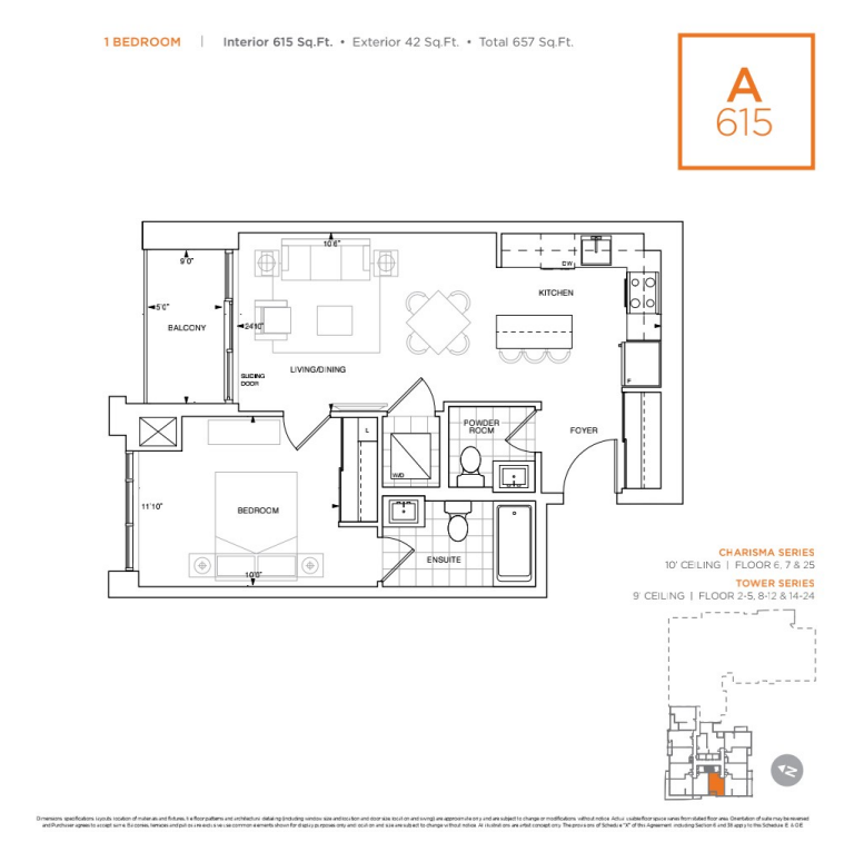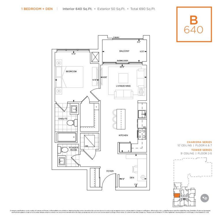 Overall, suites that will be made available at Charisma Condos will range in size from 540 square feet to 1439 square feet. These suites will also come in a variety of configurations, some of which include the usual; one-bedroom, two-bedroom, and three-bedroom options, as well as also variations of these with dens or flex spaces included.