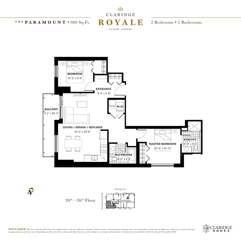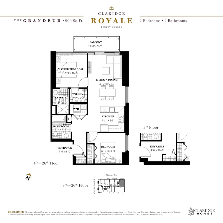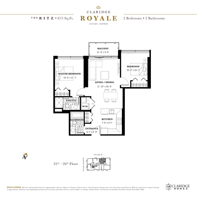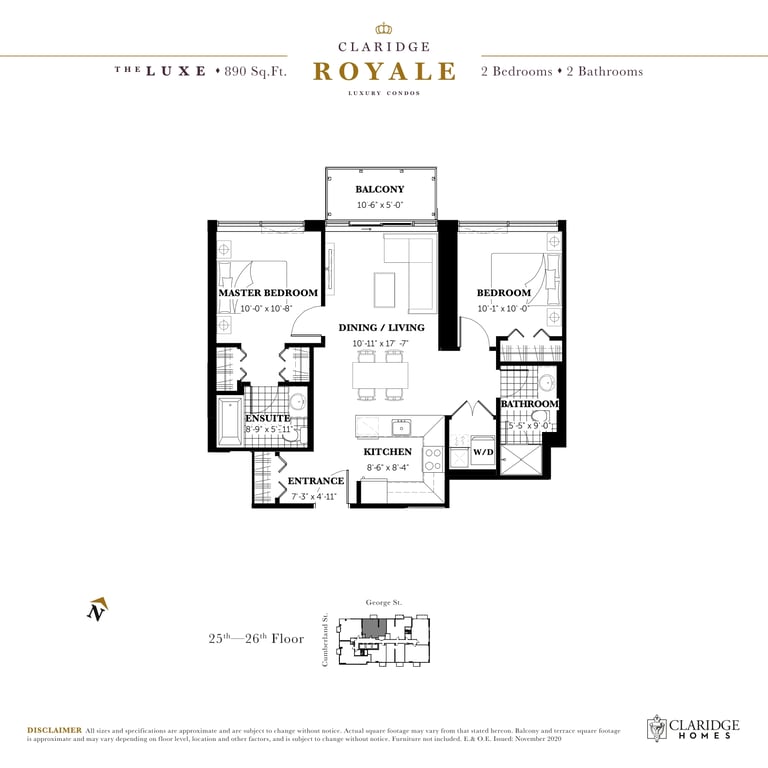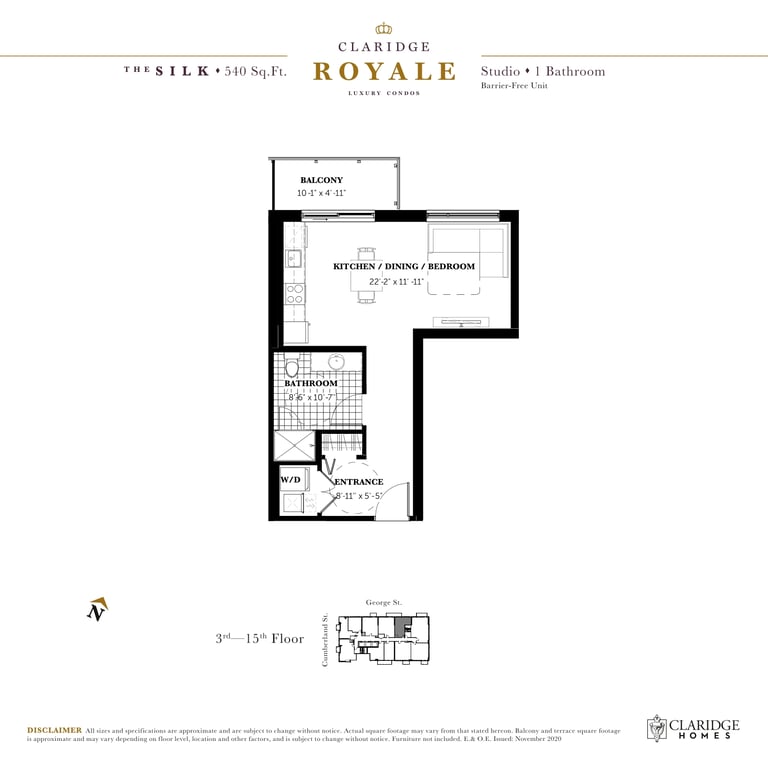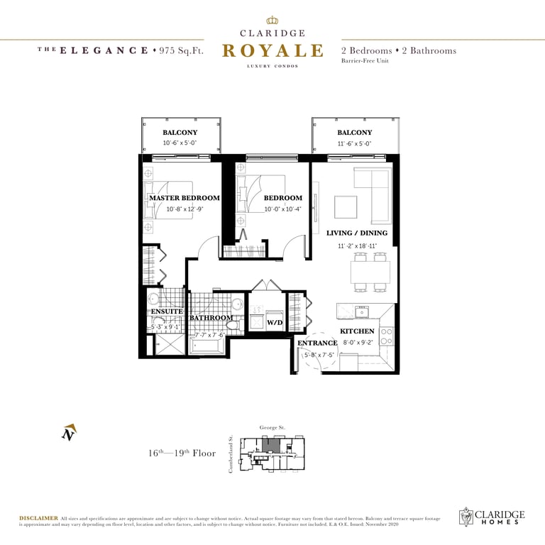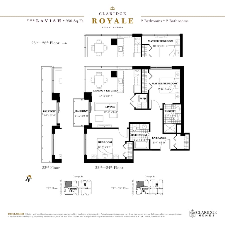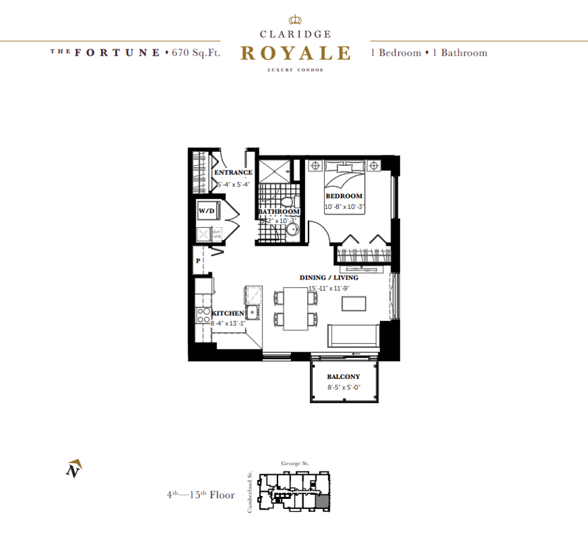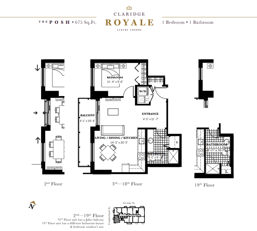 Condos range from 540 to 980 square feet, catering to every lifestyle. Whether a young professional seeking a chic studio or a family needing a spacious two-bedroom apartment, Claridge Royale accommodates all.