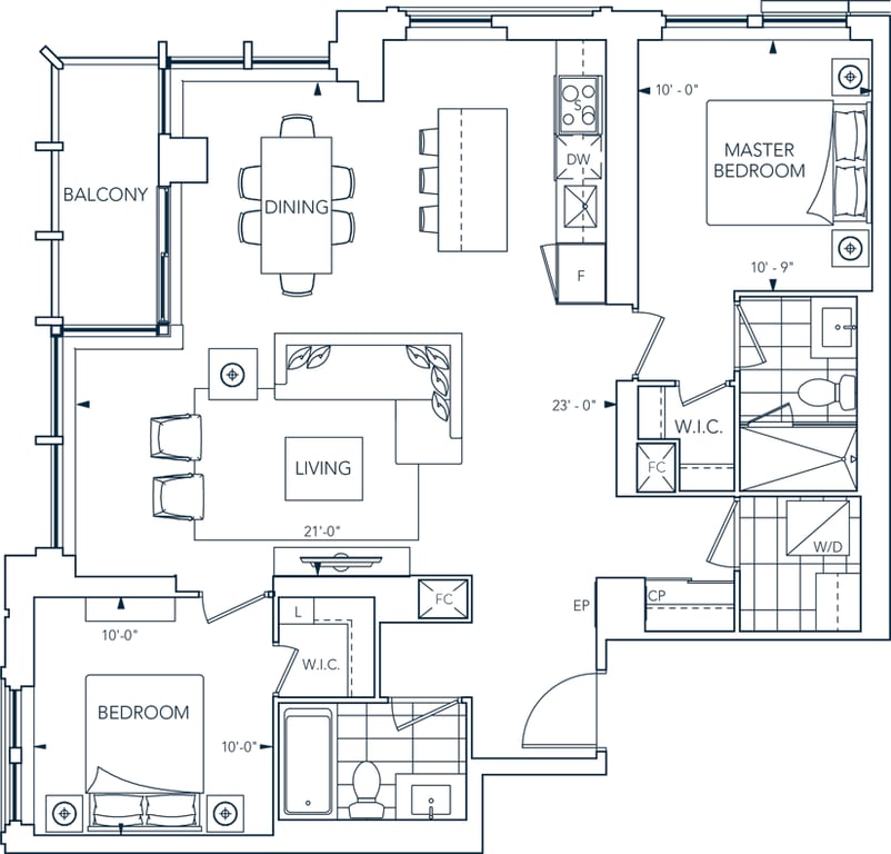 Evermore Condos by Tridel will feature open-concept residential units allowing homeowners to visualize their home as a blank concept. Upon arriving home, residents will be greeted by a welcoming and expansive entrance coupled with a spacious walk-in closet. All suites will come equipped with dryers and washers in a room designated for laundry.