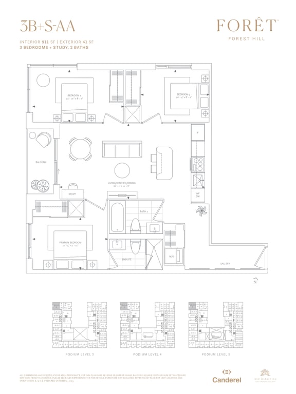 Forêt Forest Hill Condos is a beautiful living space coming to the Casa Loma neighbourhood of Downtown Toronto. As per the information displayed, there will be three high-rise buildings of 35, 33 and 32 storeys with a shared podium. Buyers will find 825 residential units in total.