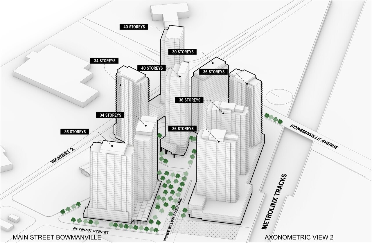 - Main Street Bowmanville Condos features nine towers with 3,938 residential units, offering a mix of condominiums and townhouses in a luxury development designed by Cusimano.