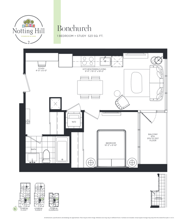 The building will come packed with bachelor, 1-bed, 2-bed, and even 3-bed units to showcase. Notting Hill Condominiums features dynamic urban methodologies with a mixture of master planning to make a sustainable living. Essentially, it focuses on using green alternatives and cutting edge environmental technologies.