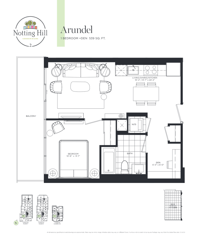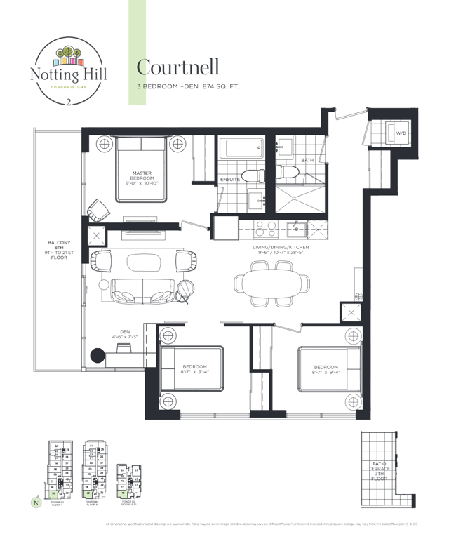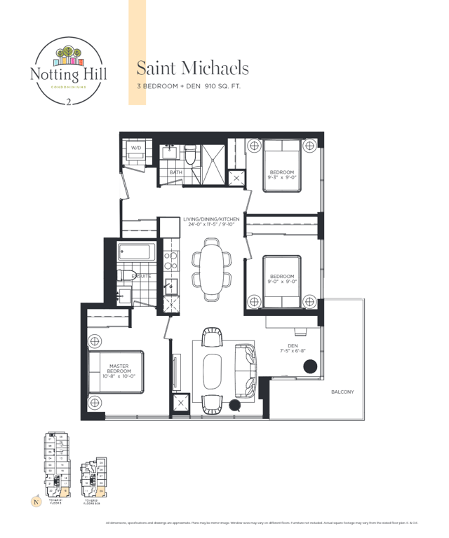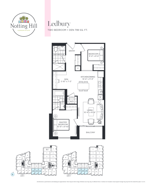 The new condominium offers every kind of urban amenities within close distance. Notting Hill Condominiums stand close to the green spaces around clubs like Scarlett Woods Golf Club and Weston Gold and Country Club. Tower B will be the highest peak in the community which bounds the shorter buildings around it. All the amenities are available within the podium, at the ground, or even on second levels of the building. For each of the five buildings, there are specific outdoor amenities available.