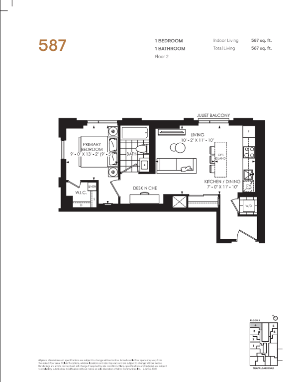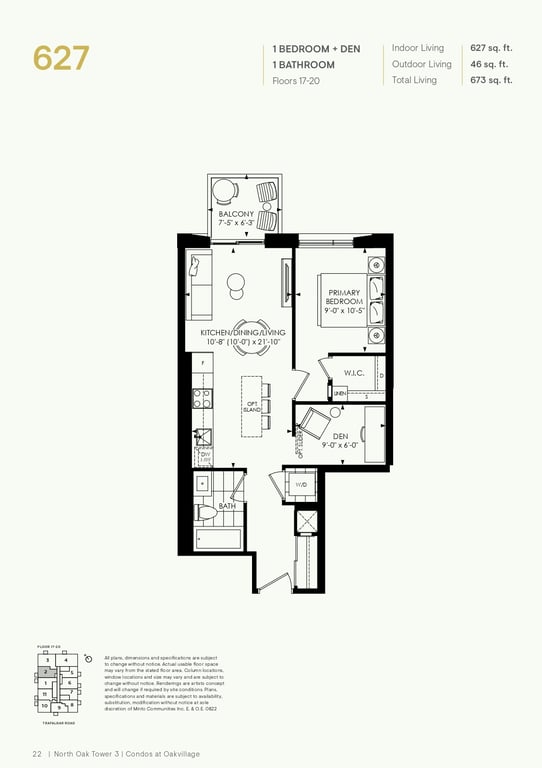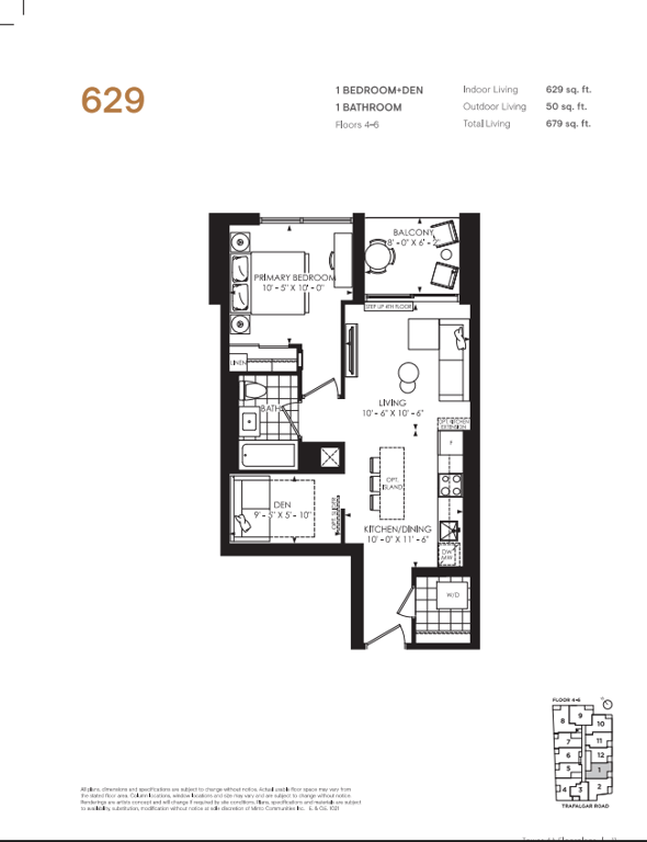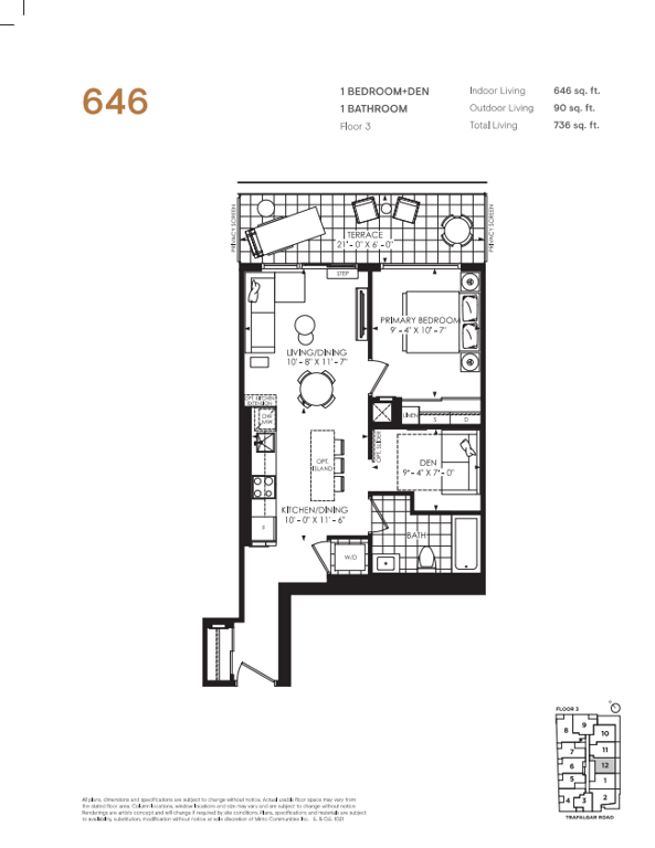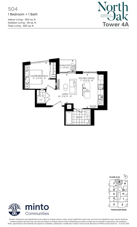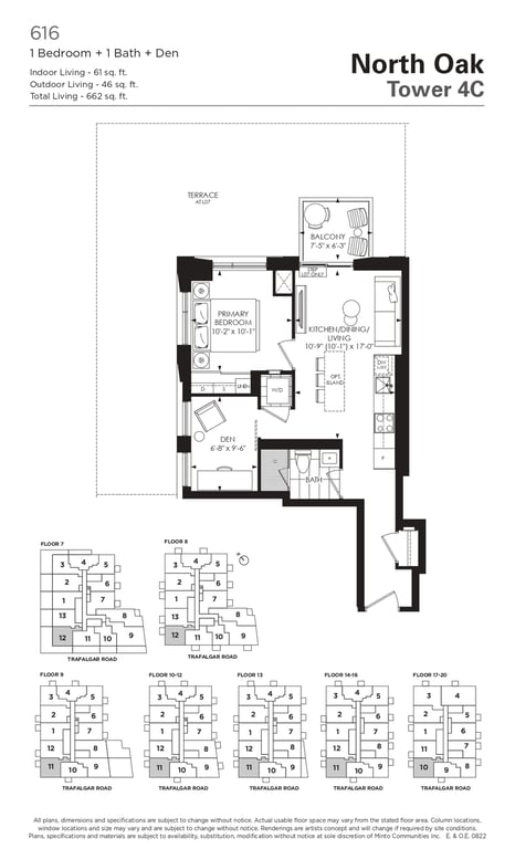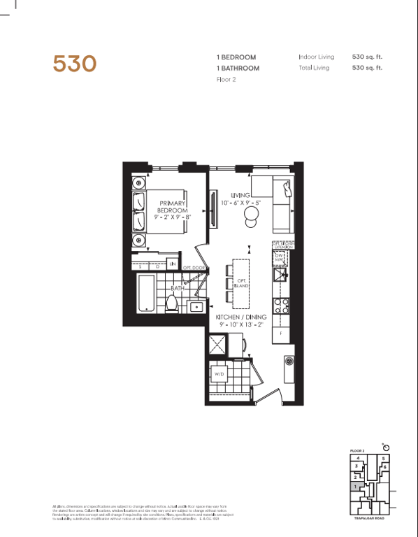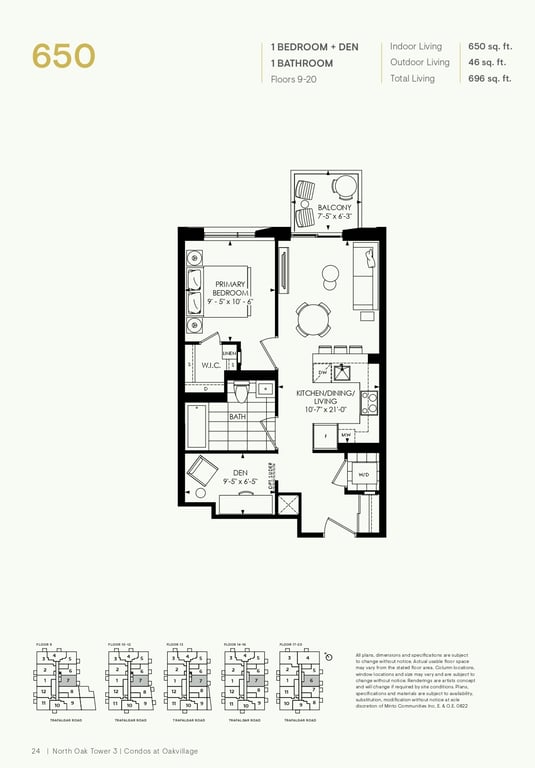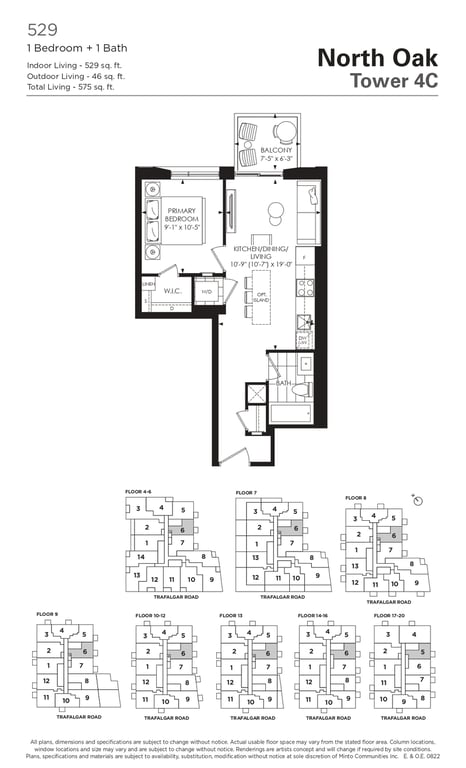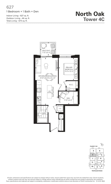 The first condominium building at Oakvillage Community Condos in Oakville will have residential suites with size ranging from 535 to 1066 sq ft. The building two will have 20 storeys and sizes of suites ranging from 600 to 835 sq ft. The number of bedrooms will vary as per the floor plans.