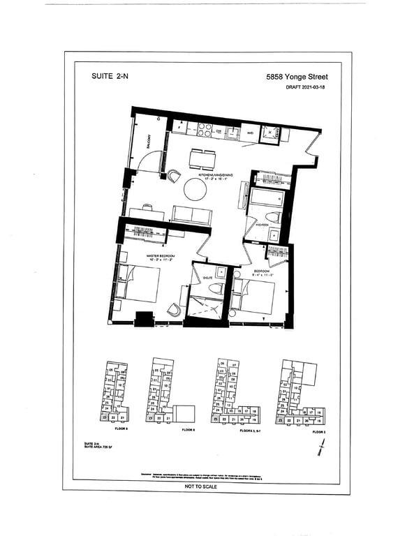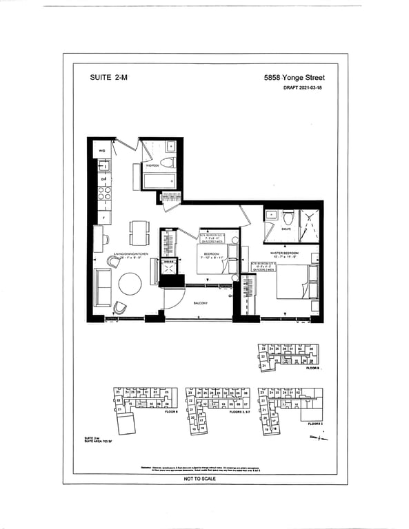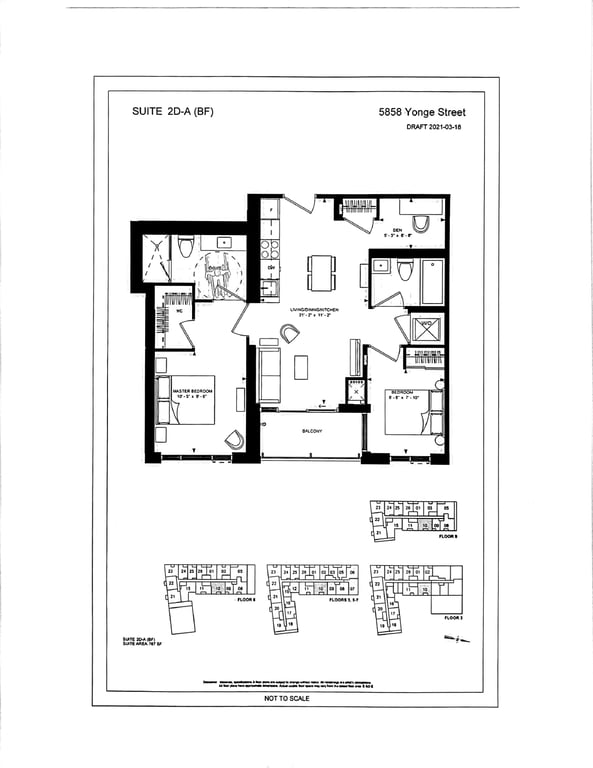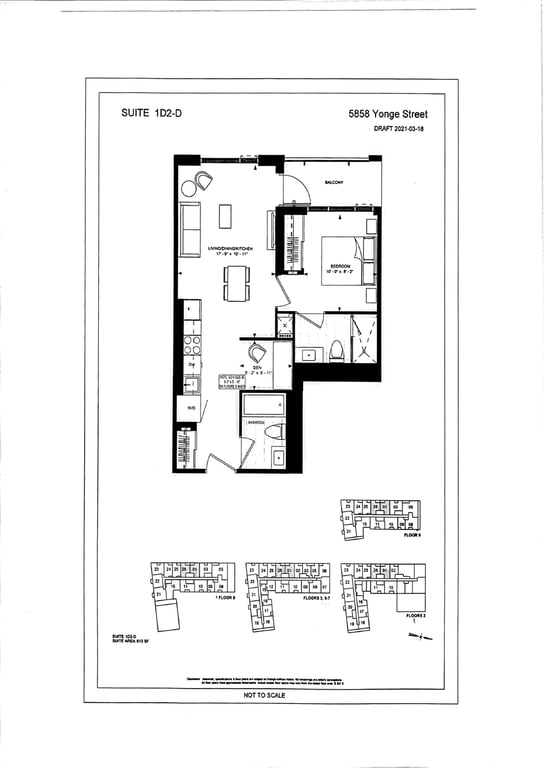 The Yonge plaza units range from 592 sqft to 1238 sqft. Buyers have various layout choices, including one-bedroom, two-bedroom, and three-bedroom plus dens.