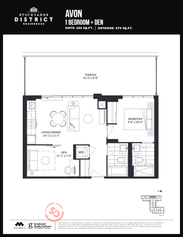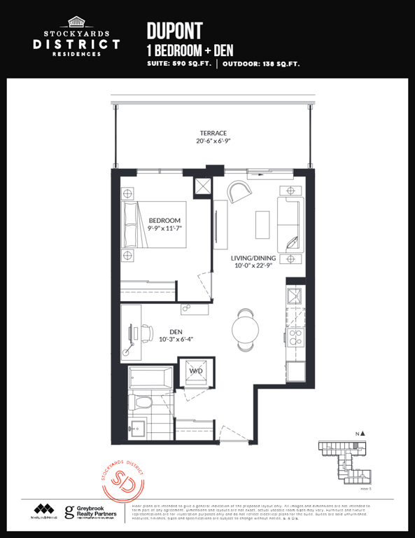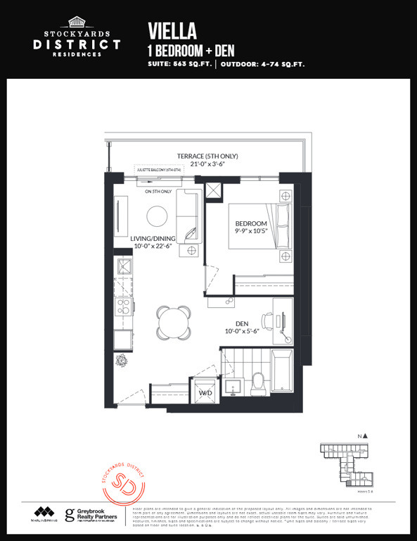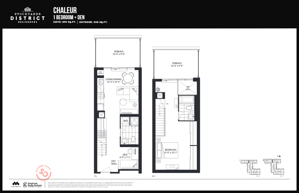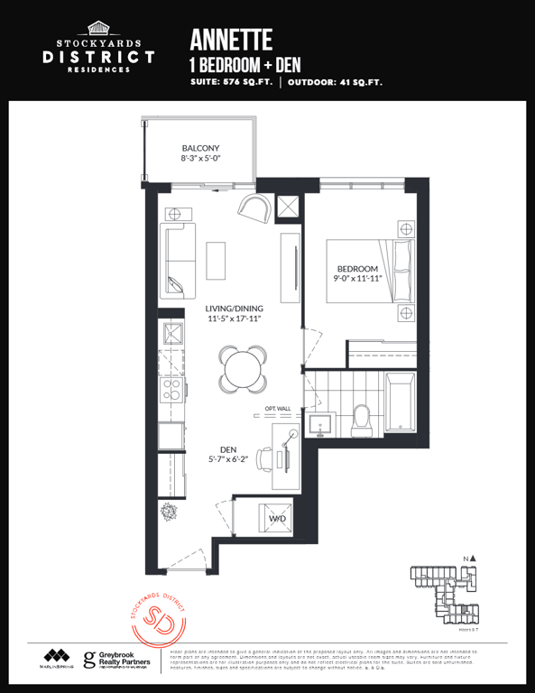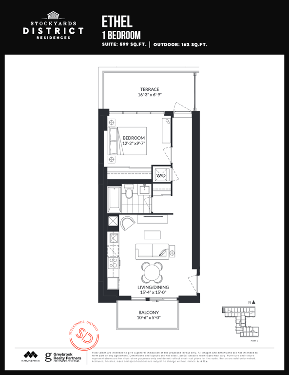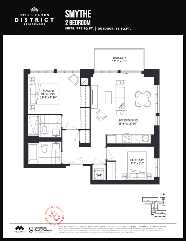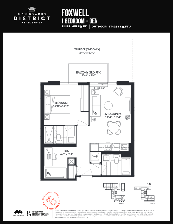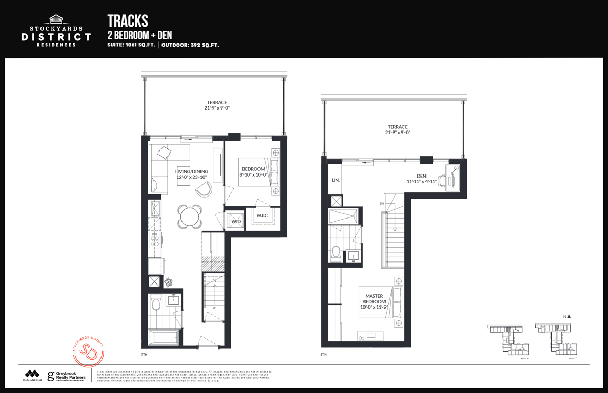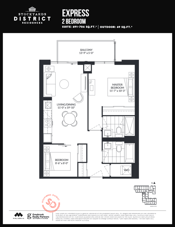 The suites at Stockyards District Residences will have 9′ smooth finish ceilings along with sliding or swing doors throughout. There will also be a laundry area which will have a finished tile look. Both the bathrooms and kitchens will have top-notch appliances to provide modern and luxurious living at Stockyards District Residences.