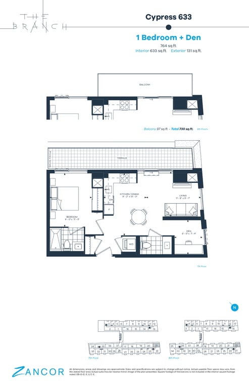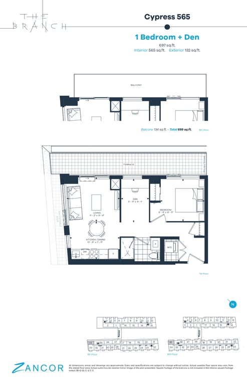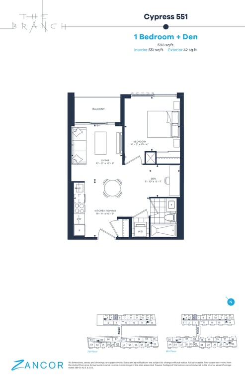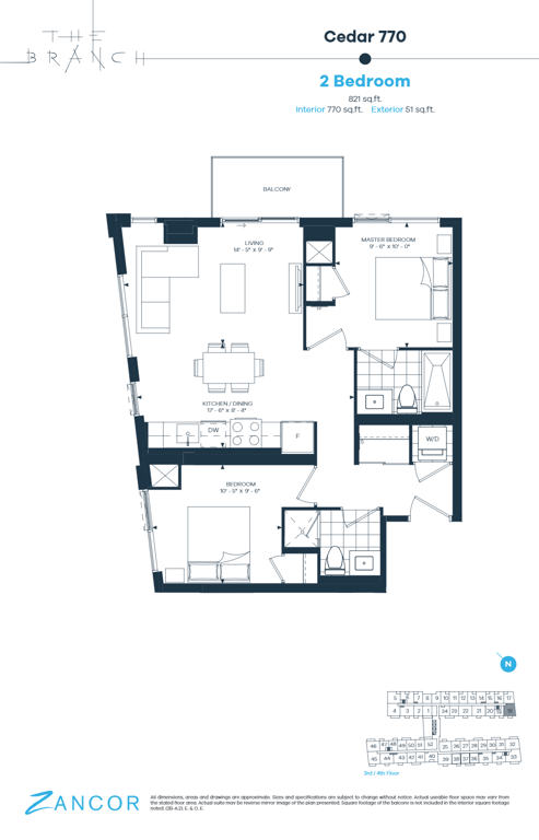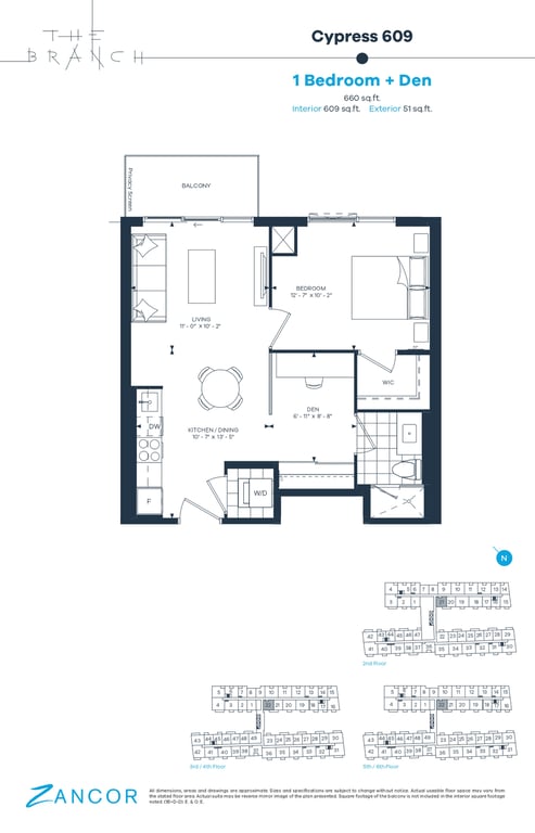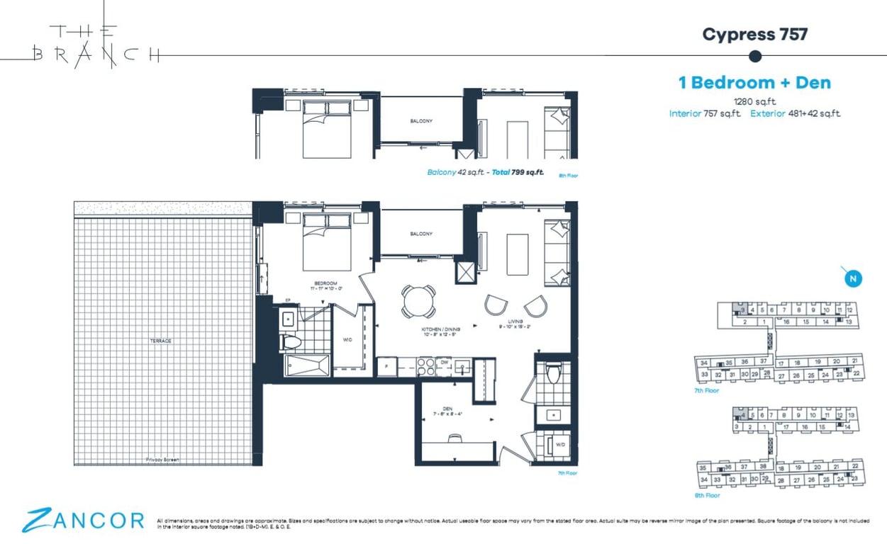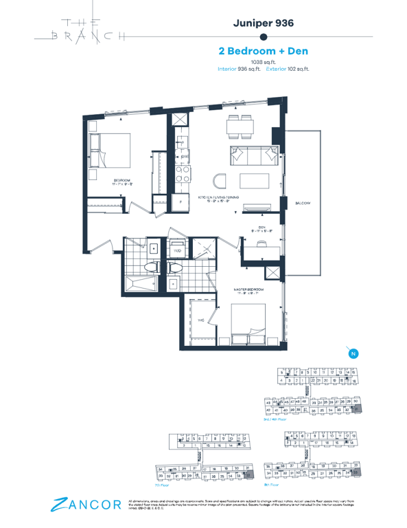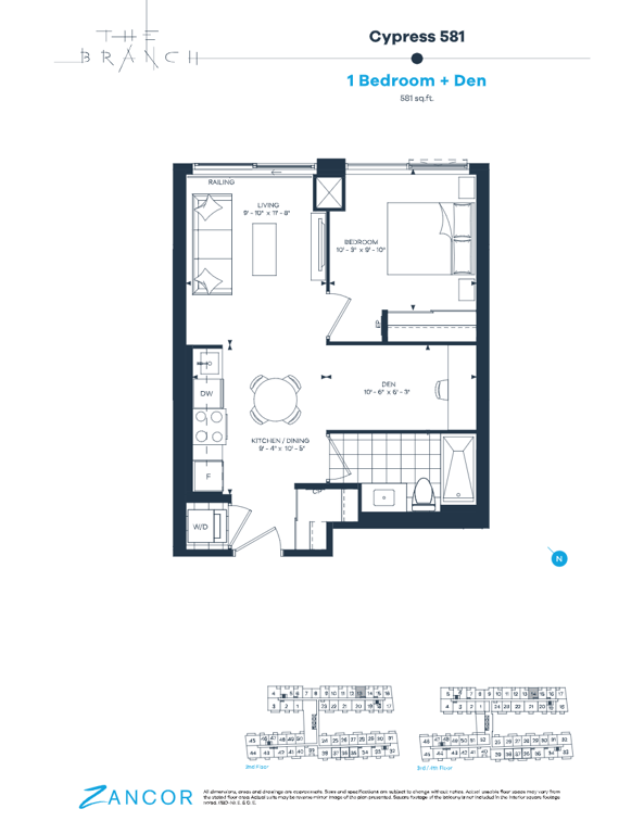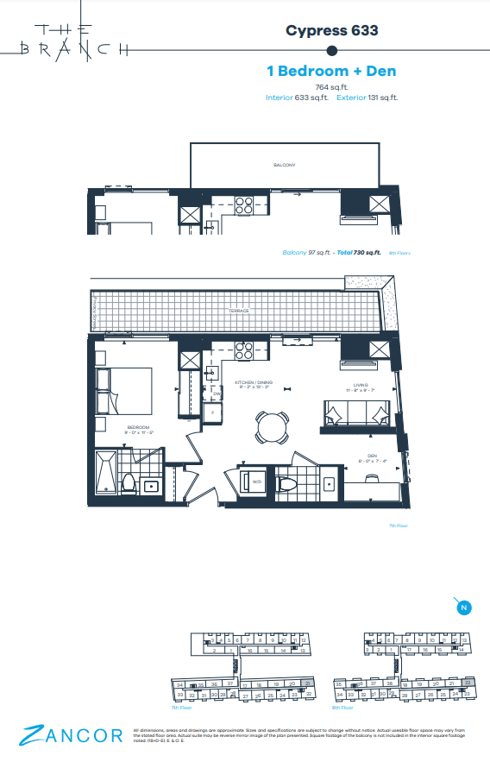 - Bedroom/Bathroom Configurations: Available configurations include 1-bedroom, 1-bedroom plus den, 2-bedroom, and 2-bedroom plus den units.