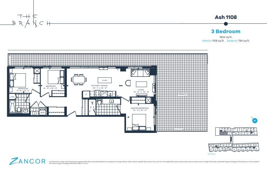 - Ceiling Heights: Standard suites have approximately 9-foot ceilings, with 10-foot ceilings on the 8th floor.