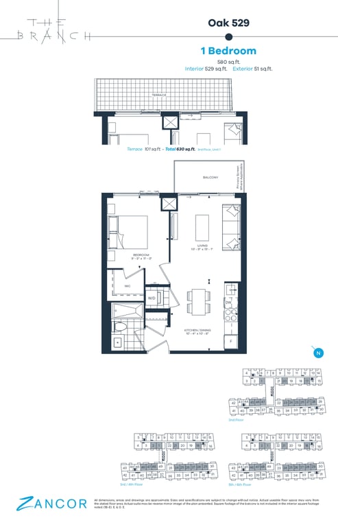 - Unit Size Range: Units range from 527 sq ft to 1,108 sq ft.