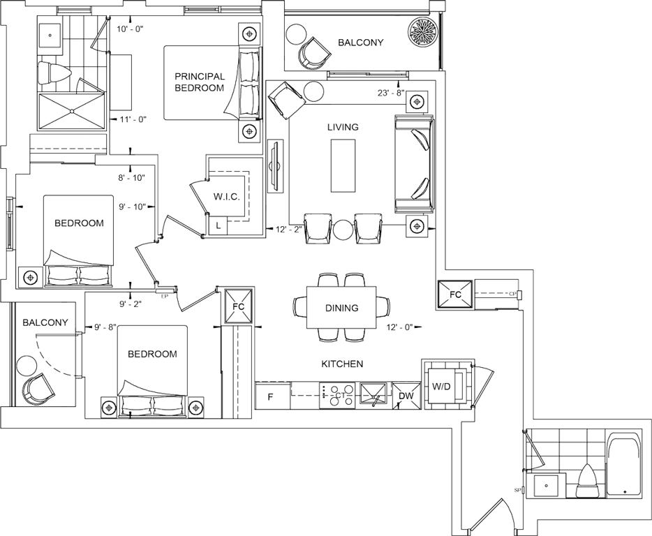 Therefore, buyers will find layouts with a mix including one bedroom, two bedrooms and three bedrooms units. Also, these suites will range from 600 to 1,150 square feet.