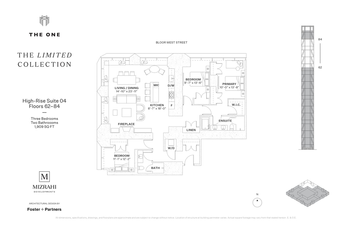 The One Condos presents a modern and chic high-rise condominium development courtesy of the globally acclaimed Mizrahi Developments. Positioned at an impressive 80 stories, this bespoke condominium is presently in the preconstruction stage, with 416 contemporary units available upon its completion in 2021. The architectural design is a collaboration between Foster+Partners and CORE Architects Group. Upon its completion, this iconic building will stand adjacent to another notable structure, Two Bloor West.