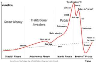 First, take a look at Toronto's detached and condo price history at the top of the page. Then, compare the detached price to this graph below, a 'textbook example of a housing bubble' price trend.